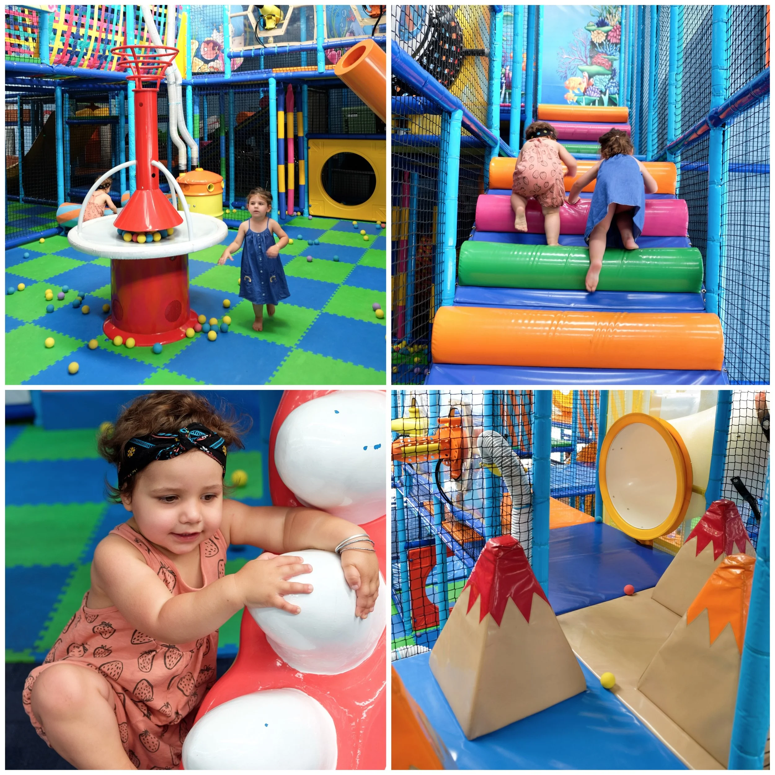 There’s an epic ball zone where the kids can place balls into the machines to create an outpouring of balls or have them hurtle them into the zone using the shooters on the upper levels. The kids also get access to trikes to ride on the bike track and a basketball court to shoot some hoops!