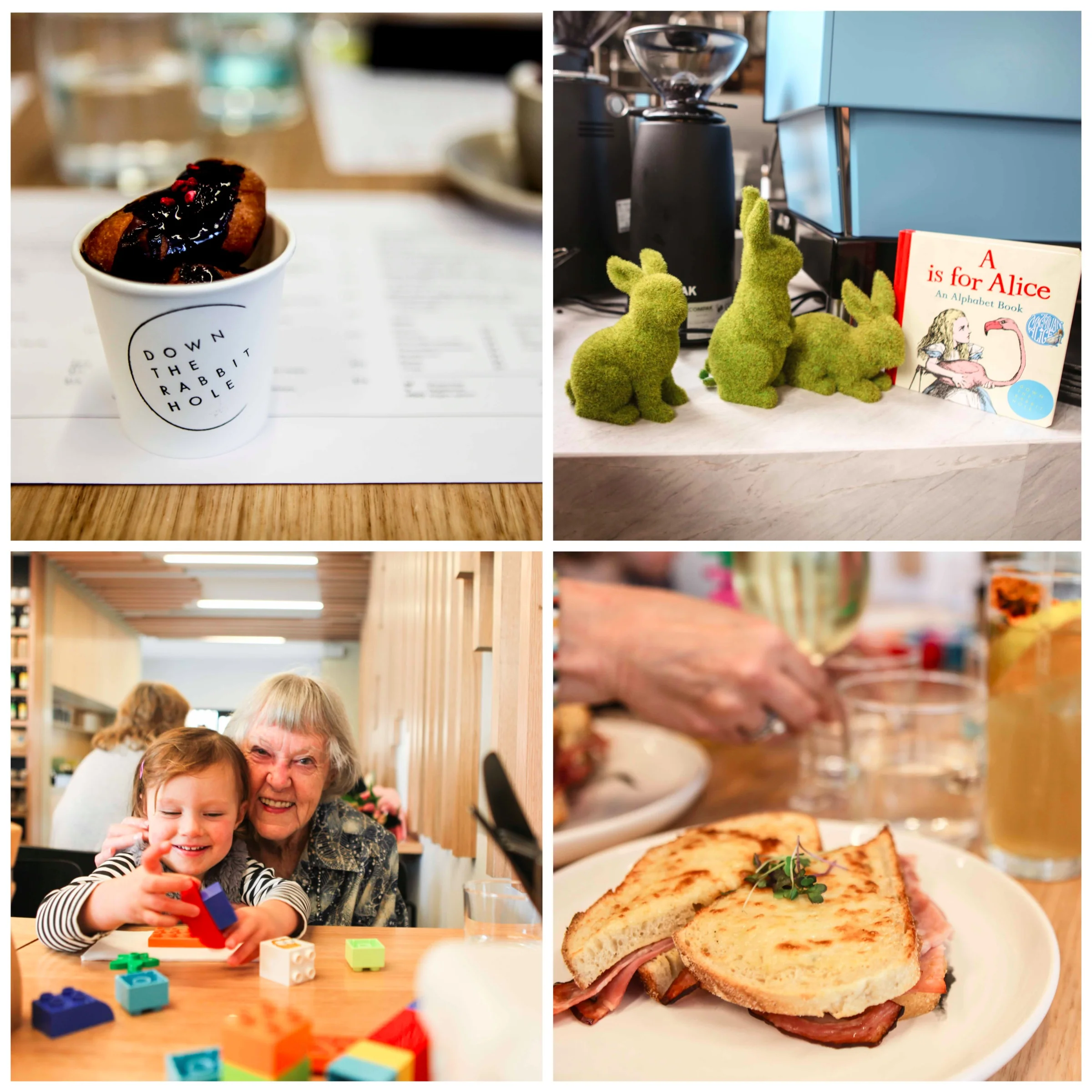 /Will you meet me down the rabbit hole next time we do lunch? With a menu like this - FOR SURE! Down The Rabbit Hole is a new addition to the Templestowe foodie scene and a little off the beaten track, unless you are one to cut around the back of Reynolds Road like this Mamma. Nestled in the little strip of shops called Newmans Local Centre is this beautiful cafe with a touch of Alice in Wonderland mixed in. Food is top shelf stuff with plenty of options not traditionally found on your standard cafe menu - including the cheeky bronuts, orange and dandelion soda and the signature Maxijohn - lemon and blueberry semifreddo sandwiched in between gingerbread waffles! The kids menu is a great mix of treats and wholesome with nothing over $9. The space is roomy, clean and fresh. The wooden details are gorgeous and no - you don't HAVE to wear stripes to fit in - although it might help! The courtyard out the back is fully enclosed apart from the staircase leading up. Perfect on a beautiful clear day.