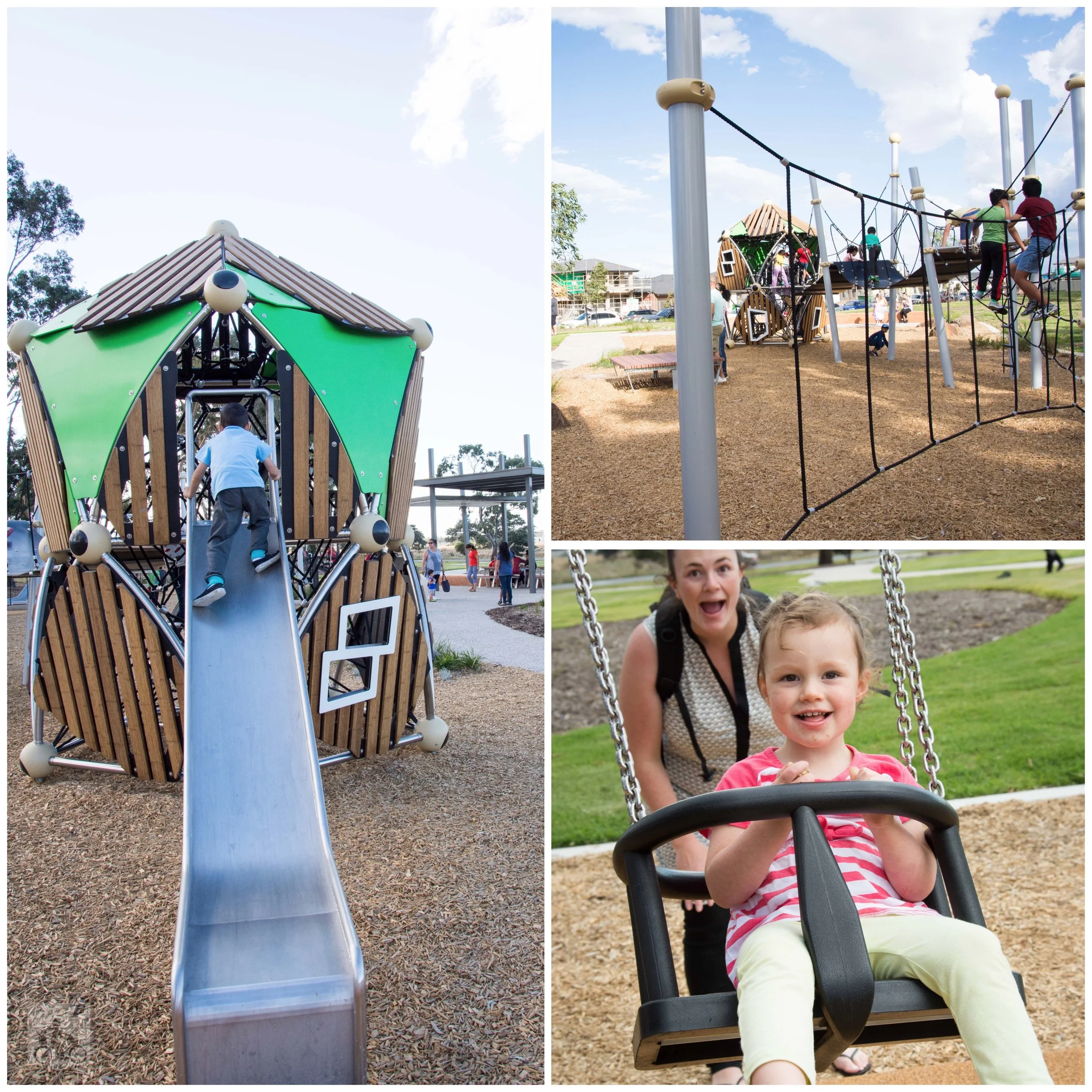 /Mamma loves a community park and Peet have done it again with this little gem at Aston. Nestled in among some gorgeous big trees you will find a playspace that is lots of fun for the kids. The main attraction is a large 'Indiana Jones' inspired rope bridge leading to a cool wooden cubby structure - complete with windows and a slide, the whole space encourages lots of imaginative play. There is also smaller playground structure with a smaller slide for the little ones plus some great swings purpose built for safety! Mamma also loves the walking, scooting and bike trail around the perimeter too. Oh and there is plenty of spots for parents to sit and relax and watch the kids play!